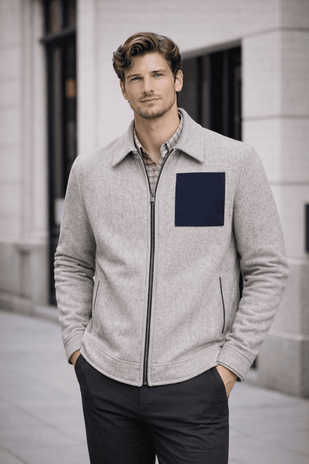 The Edison Zip Shacket from Jeffery Green is expertly crafted in Jeffery Green’s own factory in the heart of London, England — proudly Made in the UK. Tailored from 100% British wool, this elevated shacket blends the comfort of outerwear with the clean lines of tailored menswear, delivering a modern, luxury layering piece in a classic grey tone.