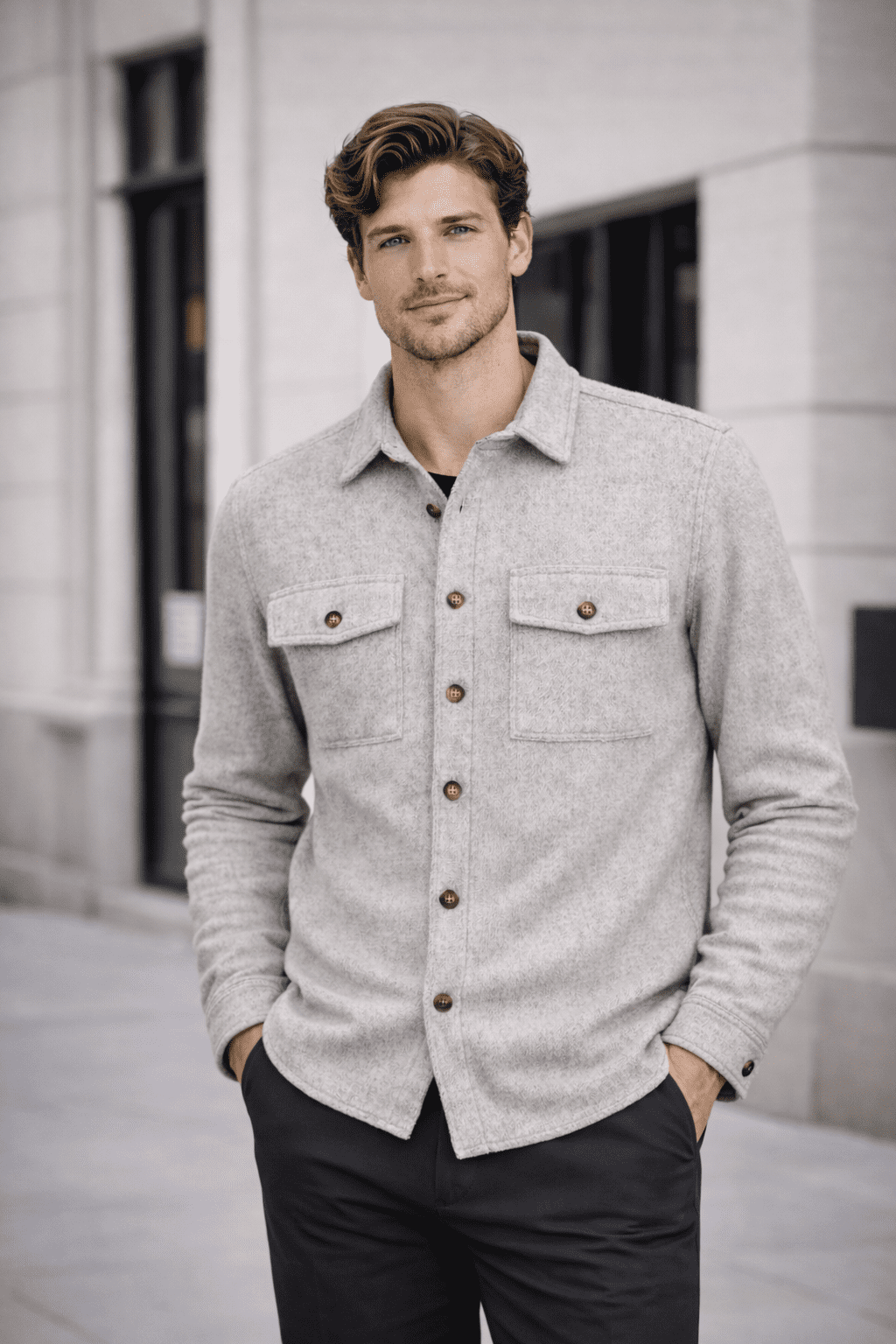 The Wool Overshirt from Jeffery Green is tailored with precision in Jeffery Green’s own factory in the heart of London, England — proudly Made in the UK. Crafted from 100% British wool, this elevated overshirt offers a luxurious weight, clean lines, and timeless character across distinctive variations including Hexham, Ashbury, Blanco, and Grey.