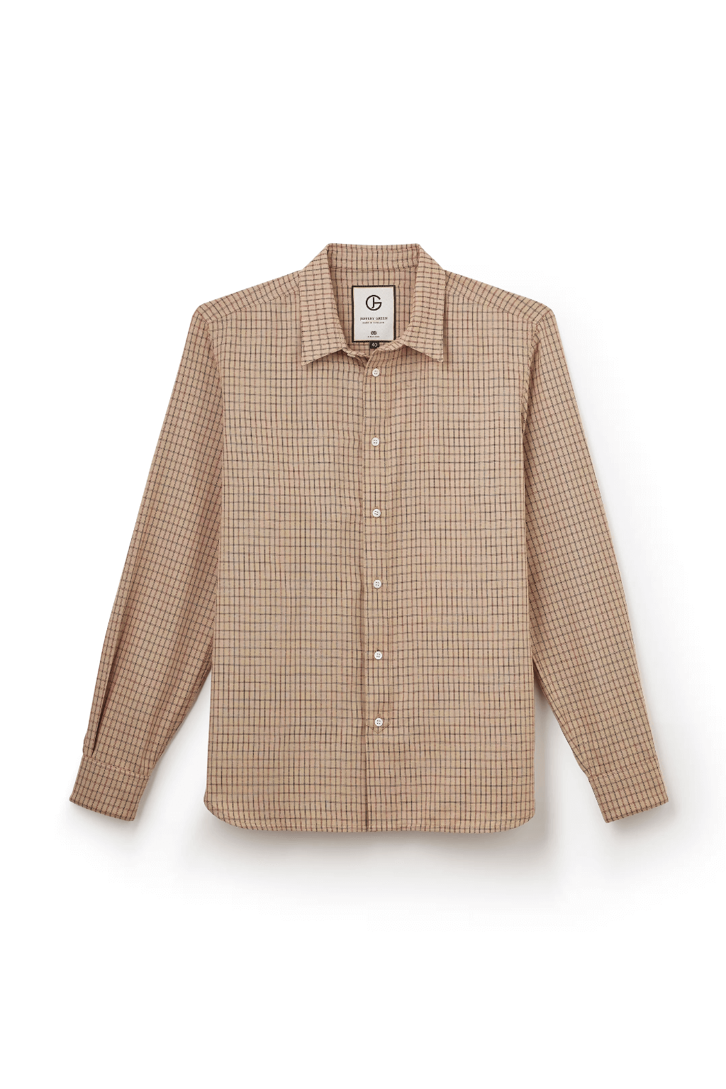 The Sable Check Shirt from Jeffery Green is thoughtfully tailored in Jeffery Green’s own factory in the heart of London, England – proudly Made in the UK. Woven from premium 100% yarn-dyed cotton, this men’s shirt delivers a timeless beige check design with subtle luxury details that elevate everyday dressing.